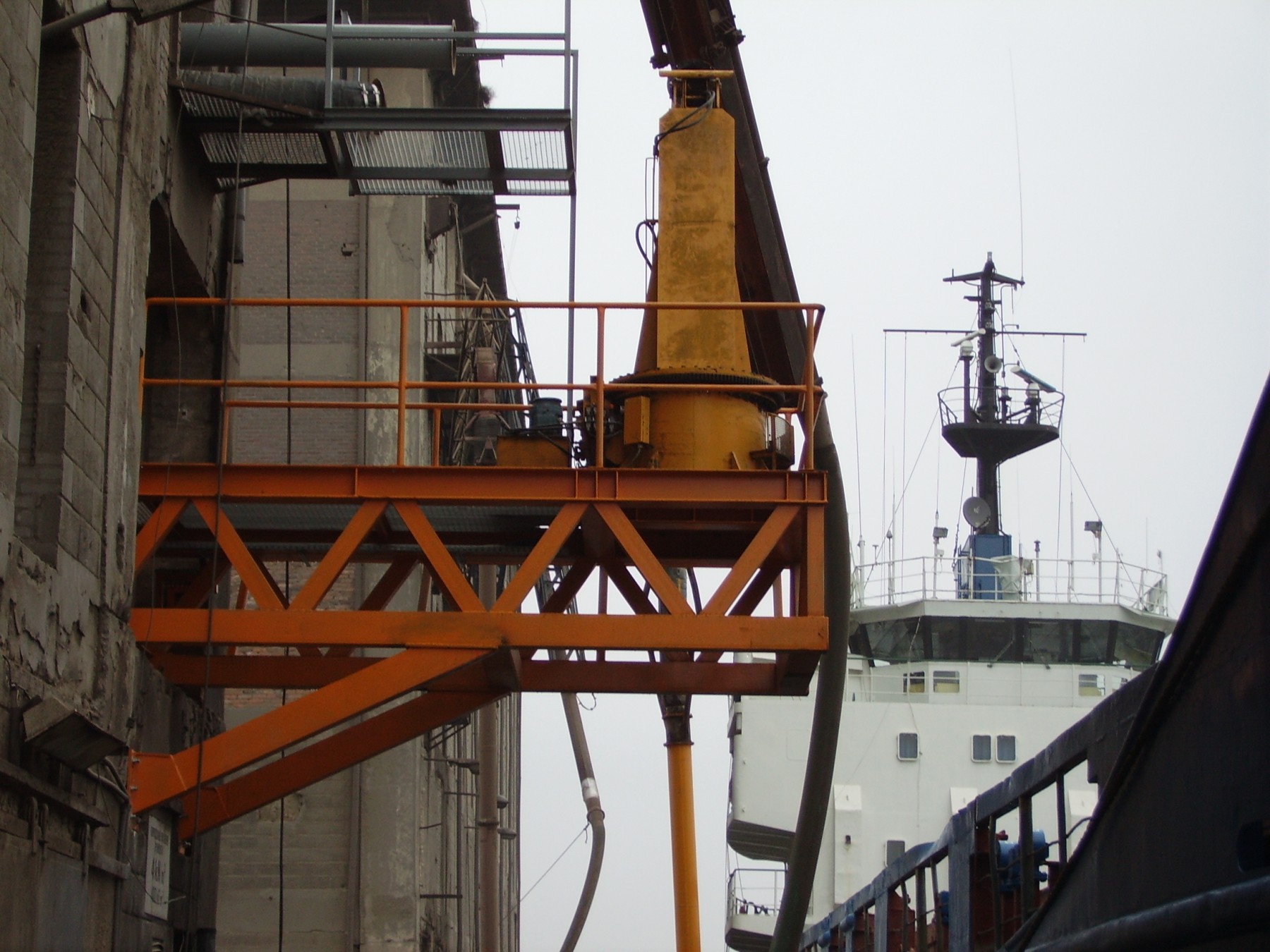Konstrukcja podtrzymuj?ca maszyn? do za?adunku i roz?adunku statków ze zbo?em.